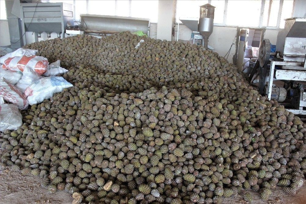 Köylüler ölümü göze alarak hasadını yaptıkları fıstık kozalaklarının kilosunu 6 lira 50 kuruştan satıyor. 4 tane kozalak 1 kilogram geliyor. Bir köylü günde 150 ila 500 kilo arasında çam fıstığı kozalağı toplayabiliyor. Toplanan çak fıstığı kozalakları işlenmek için fabrikaya gidiyor. Burada işlemlerden geçtikten sonra önce kozalaklarından ayrılan çam fıstıkları daha sonra kabukları kırılarak paketlenmeye hazır hale geliyor. Kabuğundan çıkartılan çam fıstıkları kilosu toptan 400 liradan satılıyor. Marketlerde ise kilo fiyatı 800 lira alıcı buluyor. 1 ton çam kozalağından 80 kilo çam fıstığı çıkıyor. Bu işi ailece yapan köylüler bir kaç ay süren sezonda hatırı sayılır bir kazanç elde ediyor. Ürün değerli olunca dışarıdan hırsızlar da çam fıstıklarını toplamak için bölgeye akın ediyor. Çam fıstıklarını dışarıdan gelenlerden korumak isteyen köylüler ise 2 tane bekçi ile bölgeyi korumaya aldı.