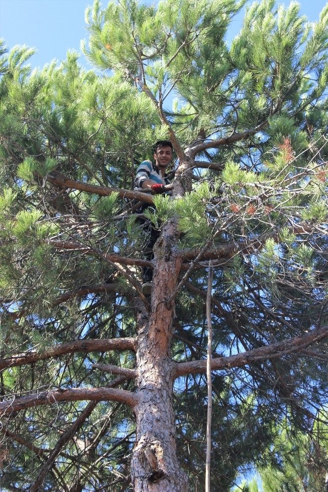 Fıstıklı köyünde her yıl çok sayıda vatandaş boyu 25 metreyi bulan çam fıstığı ağacından düşerek yaralanıyor.