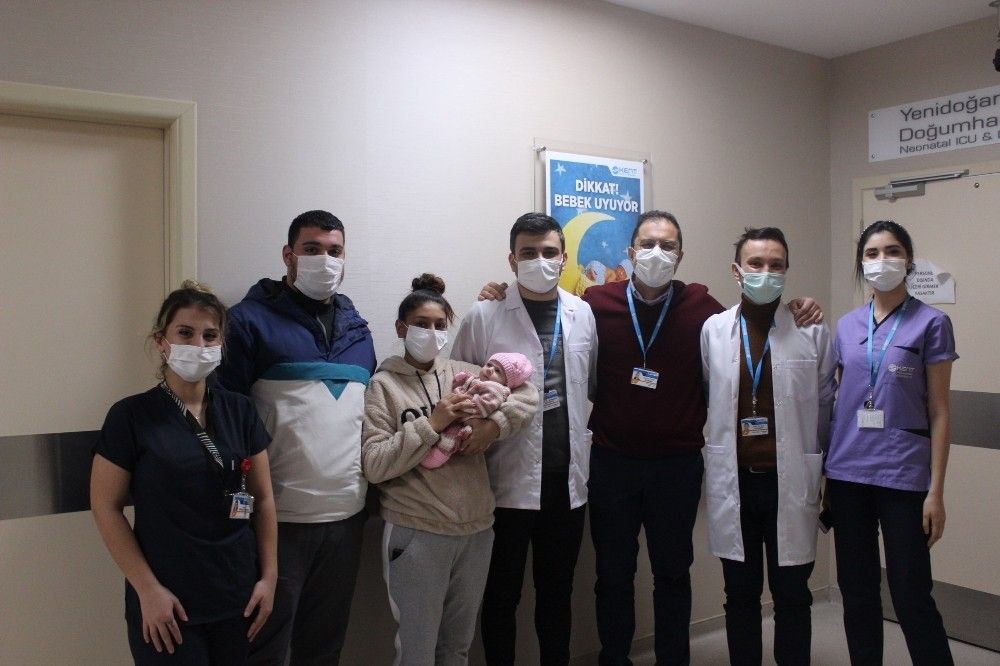 Öte yandan, yüksek ölüm riski olan bebeğini sağlıkla kucağına alan anne Vatansever, "Benim kızım olağanüstü bir bebek. Bana hamileyken bu hastalık yüzünden kızımın engelli doğabileceği, ölebileceği söylenmişti. Ailem bunları duyunca yıkıldı. Doktorlar konsey kararıyla bebeğimi aldırabileceğimi söyledi. Doğsa da ölse de benim bebeğim, dedim, kabul etmedim. Gebeliğimin 35'inci haftasında riskli gebelik nedeniyle hastaneye yattım. 36'ncı haftada bebeğim 46 santim boyunda, 2 kilo 780 gram ağırlığında dünyaya geldi. Doğumdan sonra beni yoğun bakıma kaldırdılar, iki gün kaldım. Bebeğimi ise ameliyat için Kent'e göndermişler. Ben ancak 2 haftalıkken gelip görebildim. 53 gün sonra artık bebeğimizi evimize götürebiliyoruz. İyi ki bebeğimden vazgeçmemişim. Başta Tunç bey olmak üzere kızımı yaşatan, büyüten tüm hekim ve hemşirelere sonsuz teşekkürler" diye konuştu.