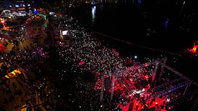 İsmail Cem Dostluk ve Barış Meydanı’na kurulan kürsüden alkış ve sloganlarla binlerce hemşehrisine seslenen Başkan Ömer Günel