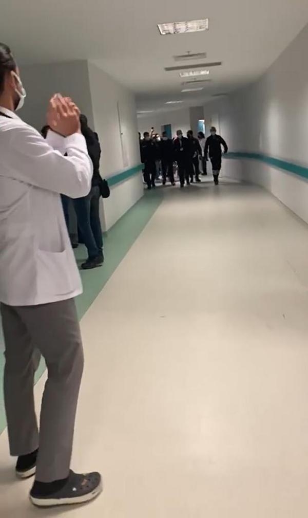 Muğla Eğitim ve Araştırma Hastanesi'ndeki apandisit ameliyatının ardından genel cerrahi servisinden taburcu edilen uzman çavuş A.A., sağlık çalışanlarının 'Sen şiddet, darp, hakaret ettin. Biz seni tedavi ettik, taburcu ediyoruz' sloganları arasında alkışla protesto edildi. Ekip aracına bindirilen A.A., ifadesi için Komiser Hamdi Bey Polis Merkezi'ne götürüldü.