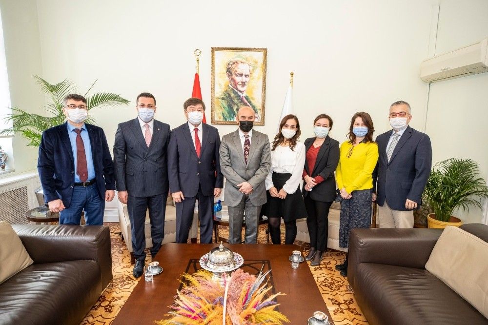 İzmir Büyükşehir Belediye Başkanı Tunç Soyer, Uluslararası Türk Kültürü Teşkilatı (TÜRKSOY) Genel Sekreteri Düsen Kaseinov'u makamında ağırladı. Kaseinov, İzmir'de opera, konser, tiyatro gibi kültürel etkinlikler yapmak için destek isterken Başkan Soyer, "Dayanışmayı gerçekleştirecek ortak paydalar bulmak lazım. Kültür, sanat en güçlü ortaklardan. Onun üzerinden yol almak çok kıymetli" dedi.