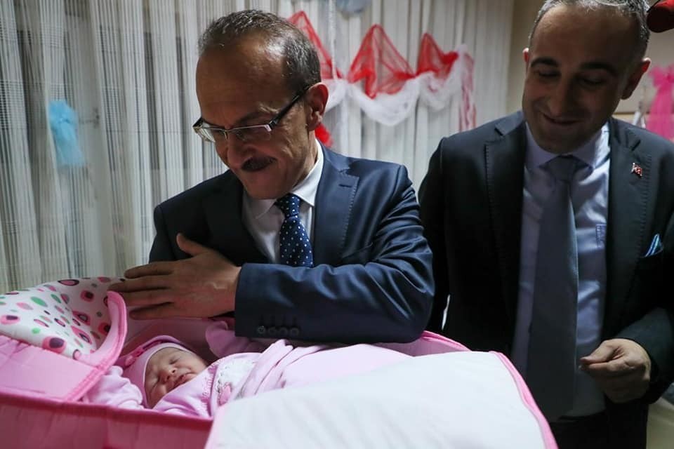 Bebeği ziyaret eden Ordu Valisi Seddar Yavuz, Ceren bebeğe altın taktı. Ceren bebeği kucağına alan Vali Yavuz, Emine-Aşkın Özdemir çiftini de kutladı.