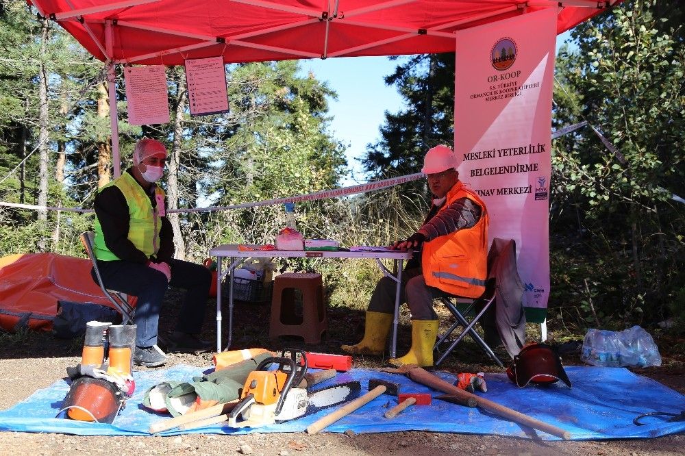 Sınavda görevli emekli Orman Mühendisi Ali Yıldız, yaptığı açıklamada "İş Kanunu gereği, Ormancılık Kooperatifleri Merkez Birliği Mesleki Yeterlilik ve Belgelendirme Birimi (OR-KOOP MYB) kanalıyla orman işçilerimize sınav yapıyoruz. Teorik, sürütme yükleme, boşaltma ve kesme işleminin yer aldığı bu sınavlar, üç istasyondan oluşuyor. İstasyondan başarılı olan orman işçilerine belge veriyoruz. Bunun daha da önemlisi mesleki yeterlilik kurumu tarafından. Akredite olan OR-KOOP tarafından veriliyor. Yaptığımız sınavda başarılı alan orman işçilerine, 5 yıl geçerlilik süresi olan belgelerini veriyoruz. Bu belgelerini alan işçiler orman kesiminde kullanacaklar. 2021 yılı sonuna kadar bu belgeleri almaları gerekiyor. Orman kesimi yaparken ellerinde bir belge olacak. Türkiye de orman işçisi belgesiz kalmayacak" ifadelerini kullandı.