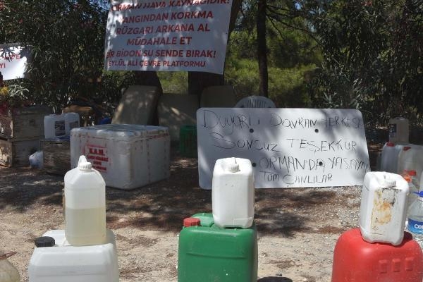 Muğla'nın Bodrum ilçesinde orman yangınlarına karşı yol kenarlarına su bidonları yerleştirildi. Kızılağaç Mahallesi Muhtarlığı ile sosyal sorumluluk gönüllüsü Ali Bilüç tarafından su bidonu getirene meşrubat kampanyası başlatıldı. Toplanan 140 bidonun yol kenarlarına bırakıldığı belirtildi. Öte yandan, asılan pankartlarla farkındalık oluşturuldu.