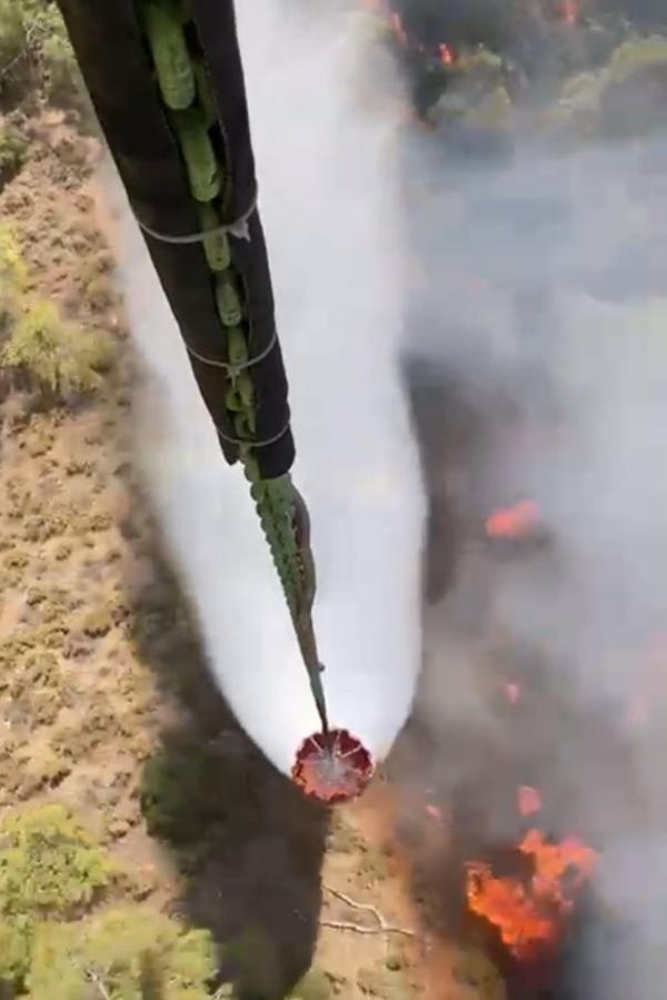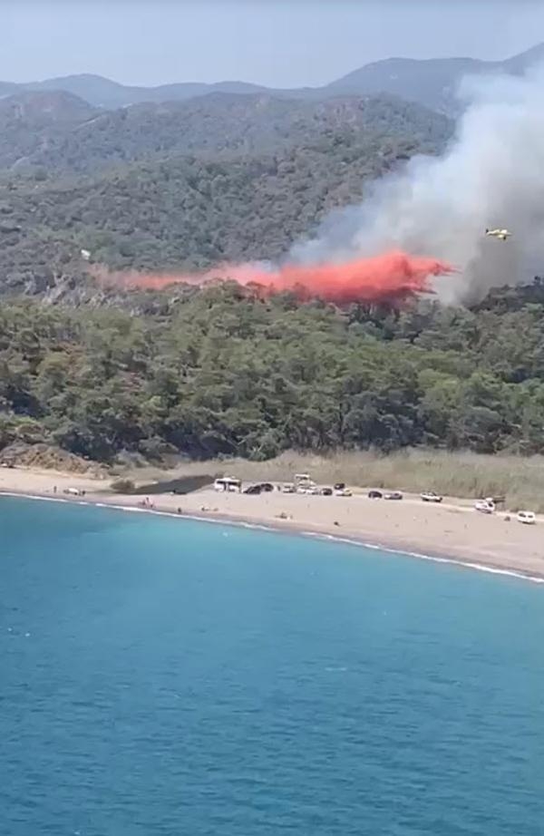 Fethiye ilçesinde orman yangını çıktı. Bölgeye sevk edilen ekipler havadan ve karadan alevlere müdahale etti. Bu sırada turistler deniz keyfini sürdürdü.