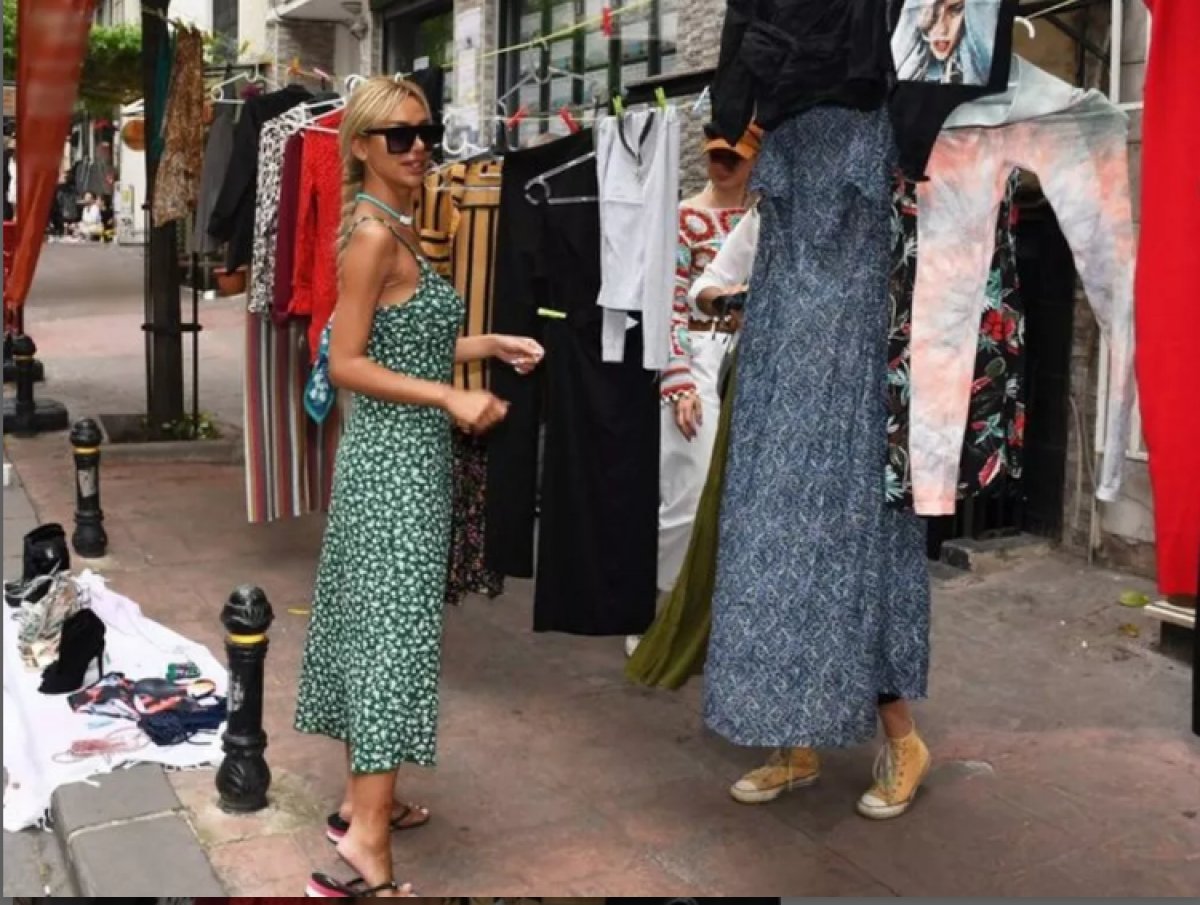 Ünlü oryantal Didem Kınalı, sokakta tezgah açıp kıyafetlerini sattı.