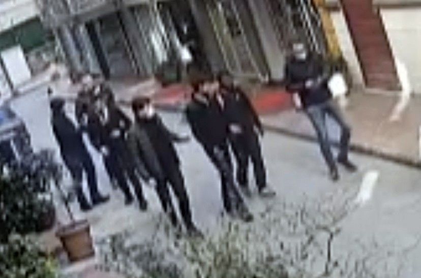 Nefes kesen kovalamaca ve çalışanın yumruk attığı anlar güvenlik kameralarına yansıdı. Görüntülerde, şüphelileri kaçıyor ve polis arkalarından kovalıyor. O esnada çalışan arkalarından koşuyor. Şahıslara yumruk atan çalışan etkisiz hale getiriyor. Ardından gelen polis şüphelileri yakalıyor. Gözaltına alınan şahıslar emniyete götürülüyor.