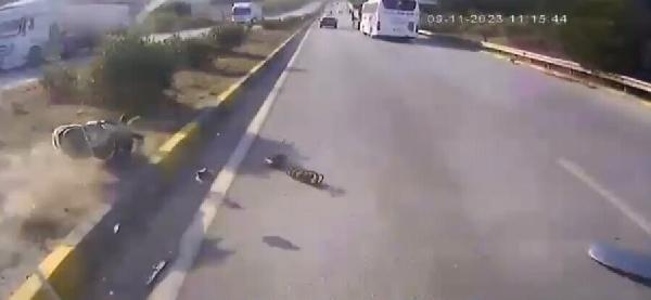 Muğla'nın Milas ilçesinde, aynı yöne giden yolcu otobüsü ile çarpışan otomobildeki Hüseyin Dursun'un (59) hayatını kaybettiği 3 kişinin de yaralandığı kazanın araç kamerası görüntüsü ortaya çıktı.