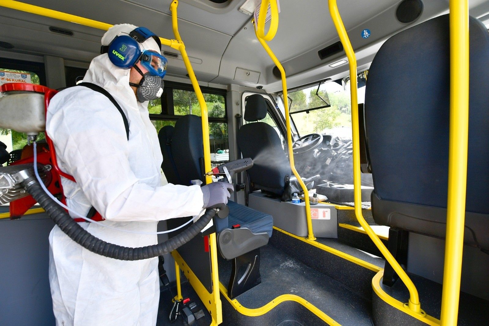 Bölgelerine göre ayrılmış 400 kişiden oluşan 27 ekiple çalıştıklarını kaydeden Yıldırım, şunları söyledi: "Bu ekipler, kendi sorumluluk alanları içinde insan temasının yoğun olduğu noktalarda dezenfeksiyon çalışmaları yapıyor. Bunların başında toplu taşıma araçları geliyor. Otobüslerin aktarma merkezlerinde personellerimiz yolcular indikten sonra dezenfeksiyon çalışmalarını yürütüyorlar. Bir otobüsü günde en az iki defa dezenfekte ediliyor. Ayrıca taksi, dolmuş duraklarında yolcular indikten sonra araç içlerinde dezenfeksiyon çalışmasını yapıyor. Yoğun bir programımız var. Sezon itibariyle hem ilaçlama hem dezenfeksiyon çalışmalarını ara vermeden sürdürüyoruz. Tam kapanma döneminde de çalışmalarımız aralıksız devam edecek."