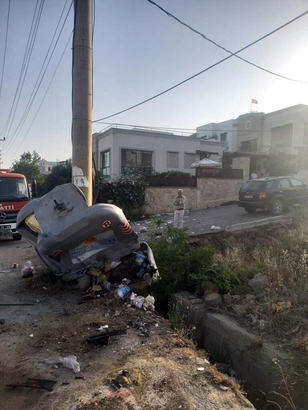 MUĞLA'nın Bodrum ilçesinde, çöp konteyneri ve elektrik direğine çarpan otomobilin sürücüsü Bilal Şahan (51) yaşamını yitirirken, yanındaki kızı Meryem Şahan (18) ise ağır yaralandı.