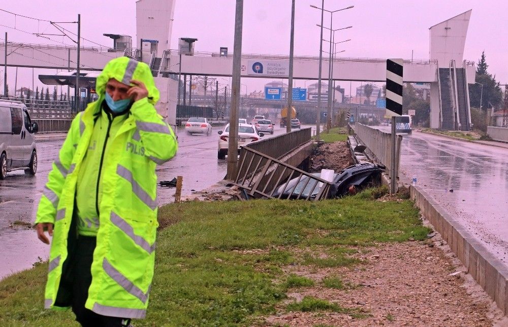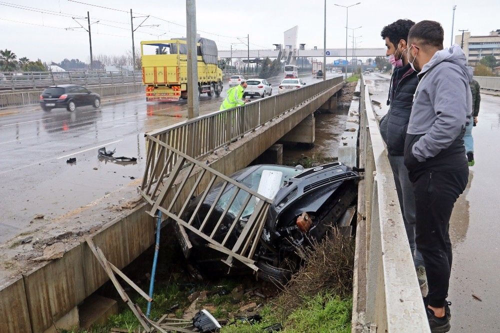 Kaza, 17.00 sıralarında Muratpaşa ilçesi Serik Caddesi üzerinde meydana geldi. Edinilen bilgiye göre, ismi öğrenilemeyen sürücünün kullandığı 06 ECT 56 plakalı Ford marka otomobil, kaygan yolda hakimiyetini kaybederek, Cırnık Köprüsü'nün bariyerlerine çarptıktan sonra iki köprünün arasına uçtu. Kazada otomobil hurdaya dönerken, otomobil sürücüsü ve araçta bulunan bir kadın yaralandı. Yaralılar, ihbarla olay yerine gelen sağlık ekipleri tarafından ambulansla hastaneye kaldırıldı.