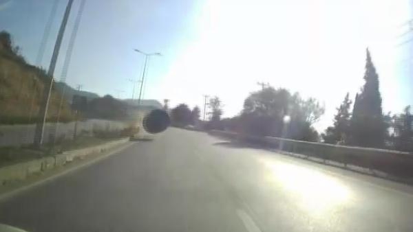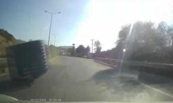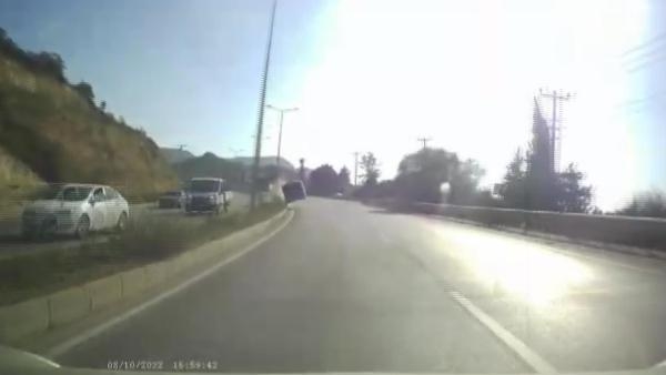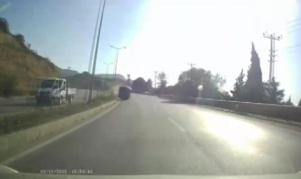 MUĞLA'nın Bodrum ilçesinde, boş su tankı seyir halindeki kamyonetin kasasından karşı şeride savruldu. Karşı yöndeki otomobil sürücüsü Alpay Kars (49) ise su tankına çarpmaktan yaptığı manevra sayesinde son anda kurtuldu. O anlar ise otomobilin kamerasına saniye saniye yansıdı.