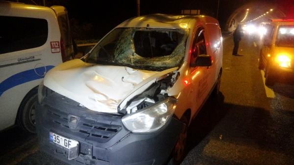 İZMİR'in Bayraklı ilçesinde otoyolda hafif ticari aracın çarpması sonucu metrelerce savrulan yaya hayatını kaybetti.