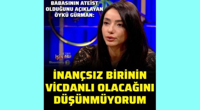 Şarkıcı ve oyuncu Öykü Gürman, BloombergHT'de yayınlanan Aslı Safak'la İşin Aslı programına katıldı. Babasının ateist olduğunu söyleyen Gürman, "İnançsız birinin merhametli ve vicdanlı olabileceğine inanmıyorum" dedi