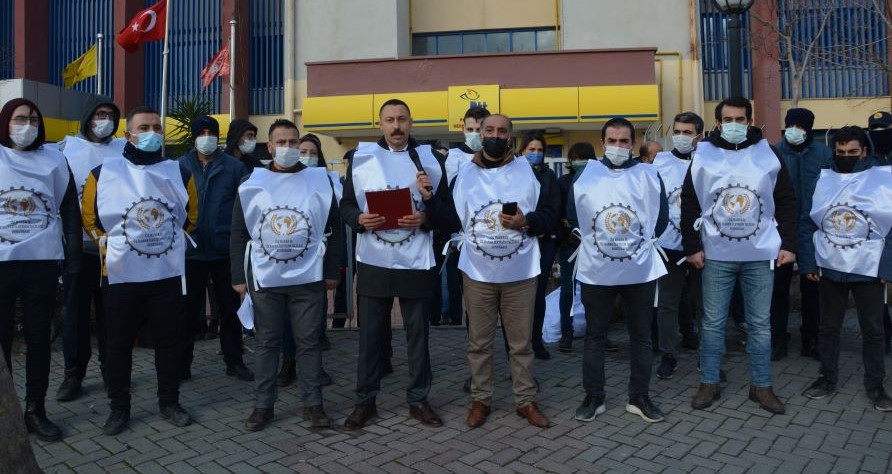 Öz Haber-İş Sendikası İzmir Şubesi Yönetim Kurulu Başkanı ve üyeleri tarafından PTT İzmir Başmüdürlüğü önünde basın açıklaması yapıldı.