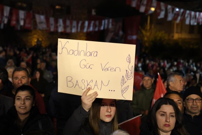 “İki ittifaktan da ayrılanlar oldu. Cumhur İttifakı’ndan Yeniden Refah Partisi ayrıldı. Birlikteyken ondan iyisi yok ama ayrılınca diyor ki ‘ip cambazı, şantajcı.’ Oysa bizden ayrılanlar var, ne diyoruz canın sağ olsun. Ben başka partiden bile bizden ayrılana canın sağ olsun derken, başka partilere dahi kötü söz söyletmezken kendimizden olan kimseye kötü sözüm olmaz. Fakat parti başka bir şeydir. Partinin gerçekleri vardır. Partinin yüzünü öne düşürmemiş, hiçbirimizi mahcup etmemiş, anketlerde yüksek memnuniyet oranıyla yeniden aday olmuş bir adayı vardır. Filiz Ceritoğlu Sengel’e sahip çıkmak her Atatürkçü’nün, CHP sevdalısının boynunun borcudur. O bundan önce Cumhuriyet tarihinde aday olmuş ve seçilmiş 6 kadın belediye başkanlarından biriydi. İzmir’deki bütün kadın adaylarımızı önce İzmir’deki kadınlarımıza sonra kadın haklarına saygılı centilmen erkeklere emanet ediyorum.”