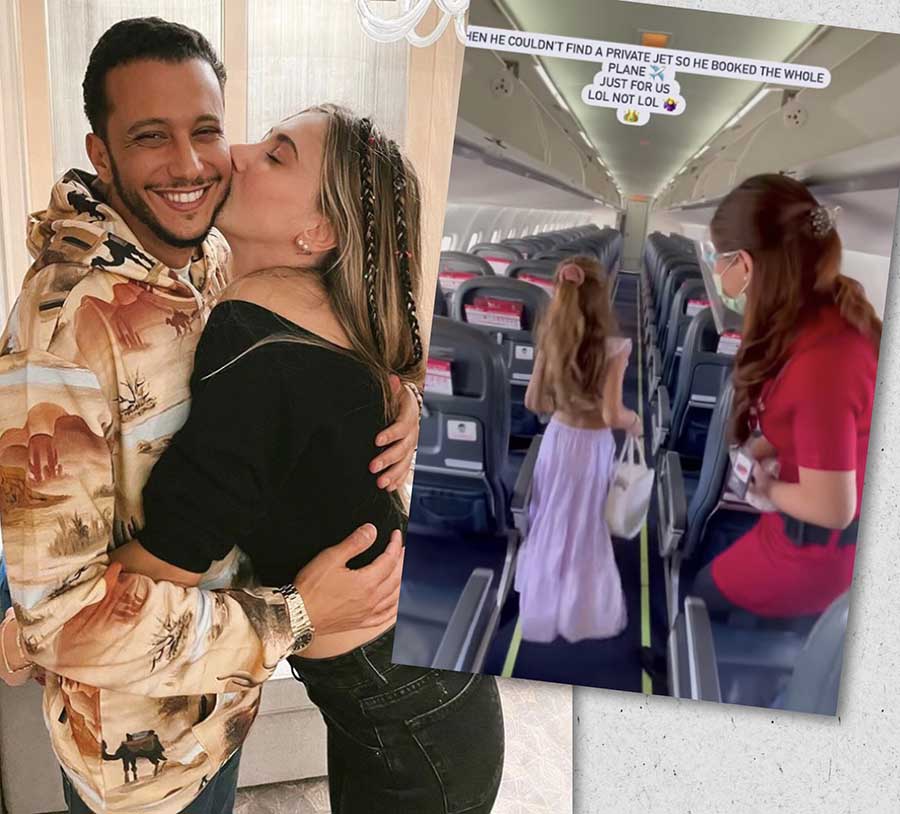 Sevgilisi Mohammed Al Saloussi sayesinde yolcu uçağında iki kişilik uçuş yapan Subaşı, “Özel jet bulamayınca tüm uçağı bizim için rezerve etti.” ifadelerini kullandı.
