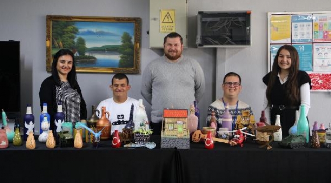 İZMİR Kiraz Halk Eğitim Merkezi'ndeki hafif düzeyde zihinsel engelli öğrenciler, geri dönüşüm ve atık malzemelerden ev aksesuarları hazırlayarak bilişsel becerilerini arttırıyor.