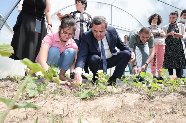 Konuşmaların ardından seranın ilk bitki dikimi de yapıldı. Konak Belediye Başkanı Abdül Batur’la birlikte etkinliğe katılan davetliler, merkezin özel çocuklarıyla birlikte ilk fidanları dikti. Konak Engelsiz Yaşam Köyü Özel Eğitim ve Rehabilitasyon Merkezi serası çocuklara özel kuruldu. SKZ Lojistik ve Şenol Otomotiv firmalarının desteğiyle yapılan serada, Konak Belediyesi Engelsiz Yaşam Köyü Özel Eğitim ve Rehabilitasyon Merkezi’nin özel çocukları dört mevsim ürün yetiştirilebilecek.