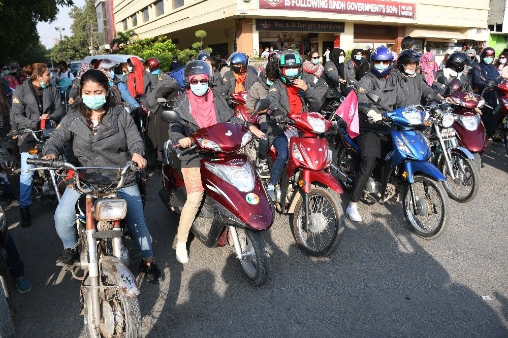 Pakistan'da tabu olarak görülen kadın motosikletçiler, Karaçi kentinin sahilinde yer alan SeaView Yolu'nda bir araya gelerek konvoy yaptı. Bazı kadınların ise çocukları ile konvoya katıldığı görüldü. Göstericiler, yaptıkları konvoy ile bağımsızlıklarını ve var olduklarını topluma göstermeyi amaçladıklarını ifade ettiler. Kadın Kalkınma Bakanı Shehla Raza yaptığı açıklamada, "Pakistan'da bir kadın savaş uçağı uçurabiliyorsa, başbakan olabiliyorsa neden motosiklet sürmesin" ifadelerini kullandı.