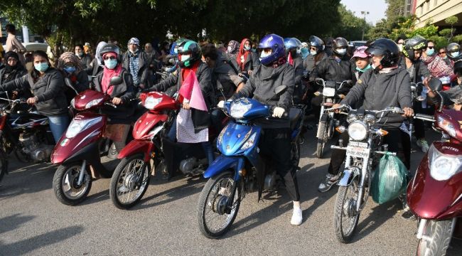 Pakistan'da tabu olarak görülen kadın motosikletçiler, Karaçi kentinin sahilinde yer alan SeaView Yolu'nda bir araya gelerek konvoy yaptı. Bazı kadınların ise çocukları ile konvoya katıldığı görüldü. Göstericiler, yaptıkları konvoy ile bağımsızlıklarını ve var olduklarını topluma göstermeyi amaçladıklarını ifade ettiler. Kadın Kalkınma Bakanı Shehla Raza yaptığı açıklamada, "Pakistan'da bir kadın savaş uçağı uçurabiliyorsa, başbakan olabiliyorsa neden motosiklet sürmesin" ifadelerini kullandı.