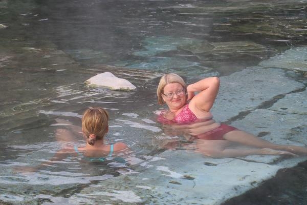 Adana'dan gelen Hüseyin Çakır ise "Pamukkale'de her yer tarih kokuyor. Bir tarafta beyaz travertenler, diğer tarafta antik kent var. Pamukkale kendini çok güzel korumuş. Özellikle soğuk havada travertenlerin üzerinde 36 derece sıcak suda çıplak ayakla yürümek çok güzel bir duygu, travertenlerin üzerinde ilk kez böyle yürüdük" ifadelerini kullandı. (DHA)