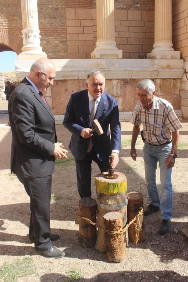 MANİSA'nın Salihli ilçesindeki Sart Antik Kenti'nde, 'Pandemi Sonrası Para Politikaları ve Ekonomik Dönüşüm' temalı '2'nci Salihli-Sart Para Kongresi düzenlendi. Etkinliğe katılanlar, tarihte ilk paranın basıldığı darp yöntemiyle hatıra parası bastı.