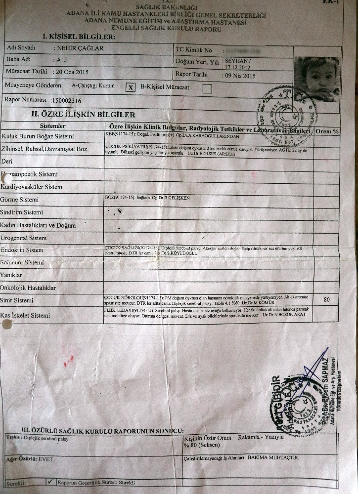 Minik kızın abası uyuşturucu batağından çıkamayınca, annesi 'pes etti' evden kaçtı. Nehir, KOAH hastalığının pençesindeki babaanne Tülay Çağlar ve engelli dede İşade Çağlar ile yaşamaya başladı. Belirli aralıklarla evlatlarını gören çift ayrı ayrı yaşayarak kendilerine farklı hayatlar kurdu. İlk adımlarını attığı günlerde parmak uçlarında yürümesine önceleri çok dikkat edilmedi. "Nasılsa, geçer" dendi. Geçmedi. İki yaşına geldiğinde babaanesi ve dedesi tarafından doktora götürülen Nehir'e, serebral palsi (beyin felci) teşhisi konuldu. Yüzde 80 engelli raporu verilen Nehir'e devlet tarafından 530 lira maaş bağlandı. Şu an bacaklarında 25 santimetreyi bulan damar kısalığı olan Nehir için ameliyattan başka çare bulunmuyor.