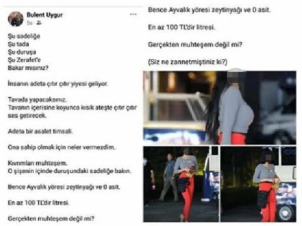 Buca Belediye Meclisi CHP'li Meclis Üyesi Bülent Uygur, zeytinyağındaki fiyat artışına dikkat çekmek için sosyal medya hesabından kadın bedeni tasvir eder şekilde ifadeler kullanması tartışmalara neden oldu. Sosyal medya hesabından kadın fotoğrafları kullanarak, "Şu sadeliğe, şu tada, şu duruşa, şu zerafete, bakar mısınız? İnsanın adeta çıtır çıtır yiyesi geliyor. Tavada yapacaksınız. Tavanın içerisine koyunca kısık ateşte çıtır çıtır ses getirecek. Adeta bir asalet timsali. Ona sahip olmak için neler vermezdim. Kıvrımları muhteşem. O şişenin içinde duruşundaki sadeliğe bakın. Bence Ayvalık yöresi zeytinyağı ve 0 asit. En az 100 TL'dir litresi. Gerçekten muhteşem değil mi? (Siz ne zannetmiştiniz ki?)" ifadelerini kullandı.