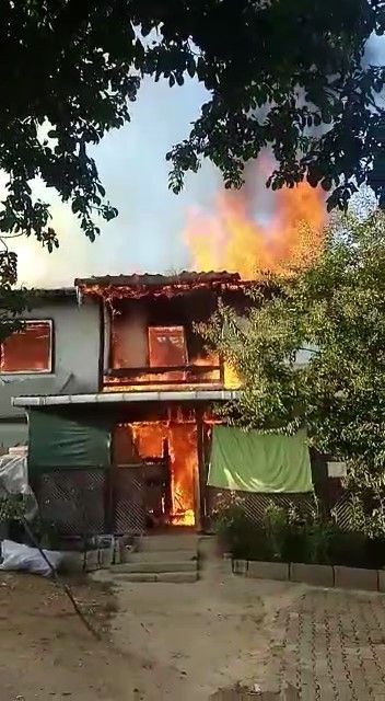 Patlayan kombi müstakil evi alev alev yaktı