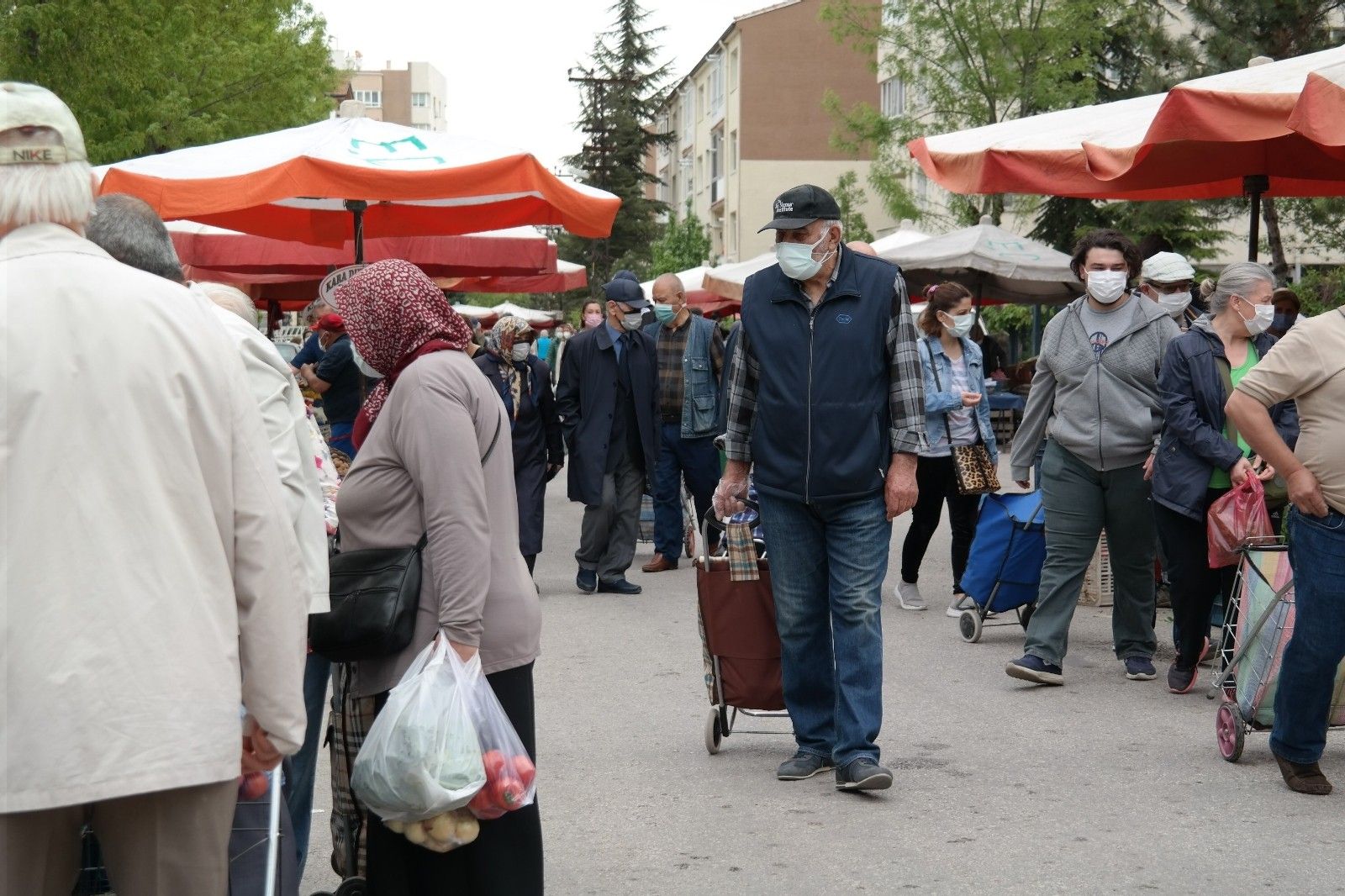 Eskişehir'de vatandaşlar yayınlanan genelge ile yaklaşık 1 hafta sonra ilk kez kurulan pazarlara akın etti. Alışverişlerini yapmak üzere Odunpazarı bölgesi Vişnelik mahallesinde normal şartlarda çarşamba günleri kurulan pazara gelen insanların bazı tezgâhların önünde uzun kuyrukların oluşturması dikkat çekti.