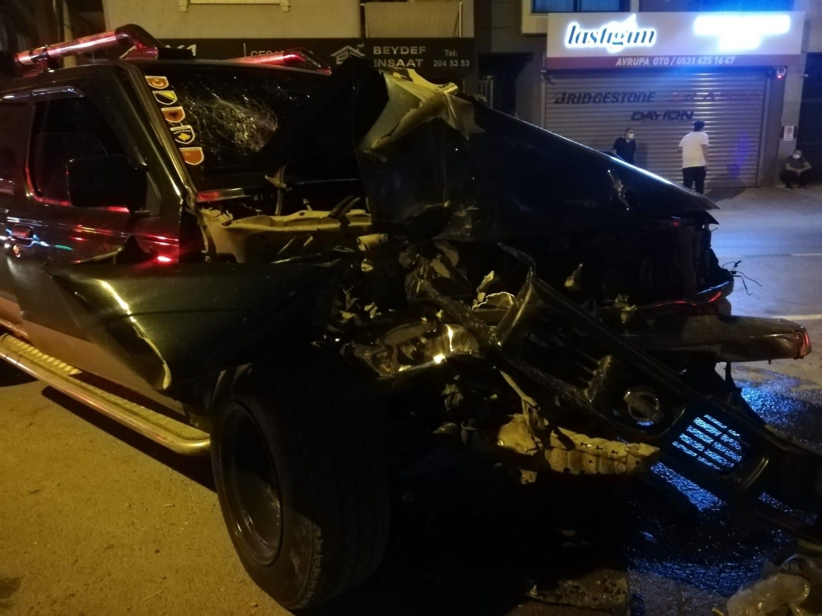 Pikap park halindeki iş makinesine çarptı: 2'si ağır 4 yaralı