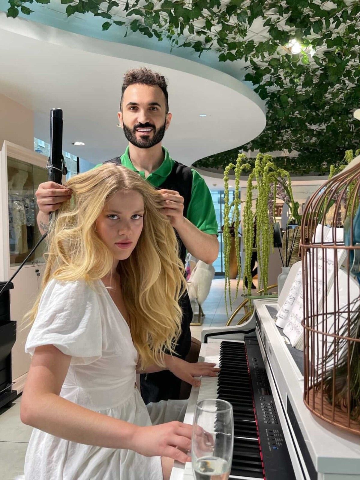 Saçı yapılırken piyano çaldı, şarkı söyledi