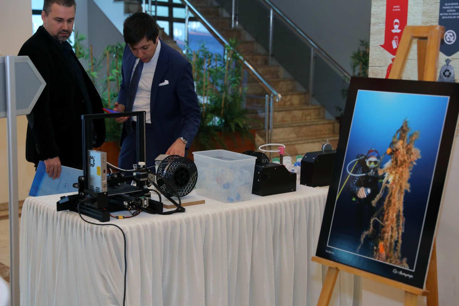 Proje kapsamında; İzmir Körfezi’ndeki plastik kirliliğine dikkat çekmek ve denizden toplanan plastik atıkların geri dönüştürülmesini sağlamak amacıyla DEÜ tarafından yürütülen çalışmalara da değinen Rektör Hotar, “DEÜ Deniz Bilimleri ve Teknolojisi Enstitümüze bağlı Eklemeli İmalat Laborutuvarı’ndaki üç boyutlu yazıcılarda atıkların geri dönüşümünde önemli çalışmalar yürüttük. Ayrıca bu proje ile atık plastiklerin katma değeri yüksek ürünlere dönüştürülmesi gerçeği de vurgulanmış oldu. Bu durum ise üniversitemizin öncü, yenilikçi ve iş birlikçi yönüne işaret etmektedir. Sosyal ve ekonomik katkılarını da öngördüğümüz bu girişimin hayata geçirilmesinde emeği geçen başta büyük ailemizin fertleri olmak üzere; bütün kurum ve kuruluşlara teşekkür ediyorum” ifadelerinde bulundu.