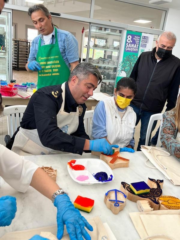 Polis Teşkilatının 177'inci kuruluş yılı ve Polis Haftası dolayısıyla Bodrum İlçe Emniyet Müdürlüğü tarafından bir dizi etkinlik organize edildi. Bu kapsamda, Bodrum İlçe Emniyet Müdürü Mete Durukan, eşi Ayşegül Durukan ve beraberindeki polis ekipleri Turgutreis Mahallesi'nde ki Bodrum Engelliler Sağlık Vakfı'nı ziyaret etti. Polis ekipleri bir süre öğrencilerle sohbet etti.Ekipler daha sonra tekstil atölyesinde üretilen çantaları, ahşap baskı tekniği kullanarak öğrencilerle birlikte boyadı. Etkinlik sonunda öğrenciler ve polis ekipleri birlikte fotoğraf çektirdi. (DHA)