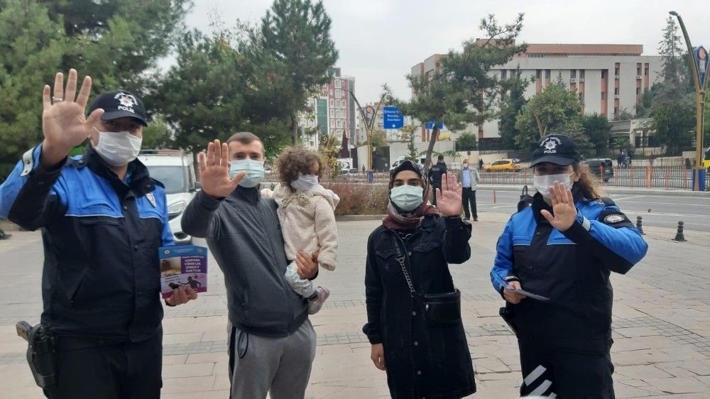 Mardin'de 25 Kasım Kadına Yönelik Şiddete Karşı Uluslararası Mücadele Günü nedeniyle polisler, broşür dağıtıp vatandaşları 'kadına şiddete karşı dur' demeye çağırdı.