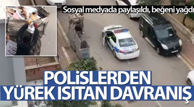 Antalya'da hafta sonu uygulanan sokağa çıkma kısıtlamasında devriye gezen trafik polisleri, çöp konteynırında kağıt toplayan vatandaşa kendi kumanyalarını verdi. Sosyal medyada yayılan görüntüler, izleyenlerin yüreklerini ısıttı.