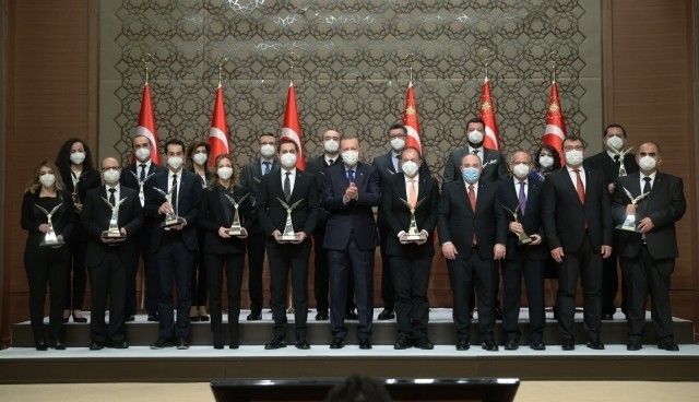 Konuşmaların ardından, Cumhurbaşkanı Recep Tayyip Erdoğan, ödül almaya hak kazanan bilim insanlarına ödüllerini verdi ve onlarla hatıra fotoğrafı çektirdi.
