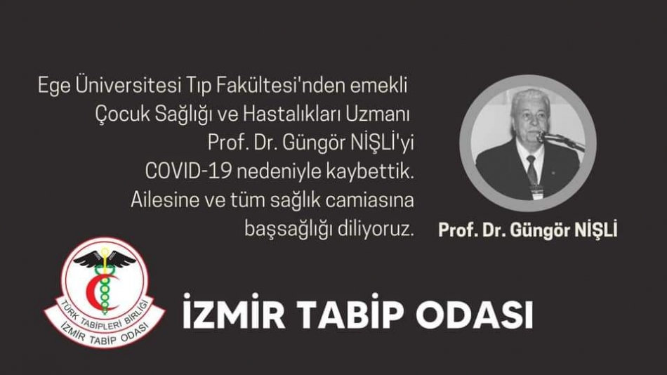 Ege Üniversitesi Hematoloji Bilim Dalı kurucusu, pediatri biliminin duayen öğretim üyesi Prof. Dr. Güngor Nişli, koronavirüse yenik düştü.