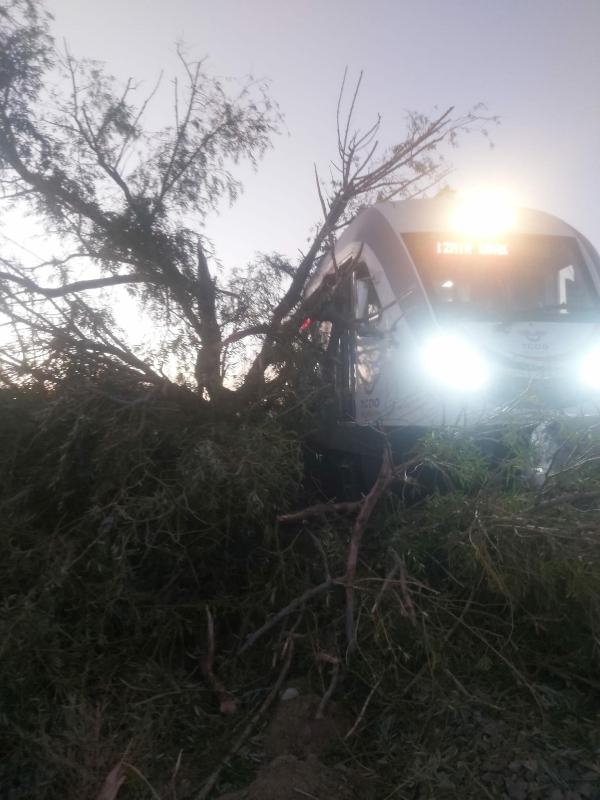 MANİSA'da, Uşak'tan İzmir yönüne gitmekte olan trenin üzerine, geçişi sırasında söğüt ağacı devrildi.