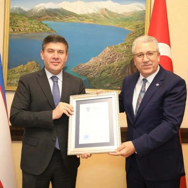 Rektör Prof. Dr. Necdet Budak, "Programımıza, Özbekistan Cumhuriyeti Yükseköğretim, Bilim ve İnovasyon Bakanı Birinci Yardımcısı Komiljon Karimov'u ve Kültür Bakanı Nazarbekov Ozodbek Akhmadovich'i ziyaret ederek başladık. Üniversitemizin farklı disiplinlerinden güçlü bir ekiple sürdürdüğümüz temaslarımızı yeni iş birlikleri ile taçlandırdık. Bu iş birliklerimizin iki ülke arasında kültürel etkileşimi artırarak geleceğe yönelik kurduğumuz kardeşlik köprüsünü güçlendireceğine yürekten inanıyorum. Taşkent Büyükelçimiz Olgan Bekar'ı da makamında ziyaret ederek, Özbekistan'da yürüttüğümüz akademik çalışmalarımızı içeren kapsamlı bir görüşme yaptık. Özbekistan Cumhurbaşkanı Başdanışmanı ve Taşkent Devlet Transport Üniversitesi Rektörü Prof. Dr. Adil Abdurrahmanov'u ziyaret ederek önemli bir görüşme gerçekleştirdik. Özbekistan Cumhurbaşkanlığı'nın tensipleriyle, Taşkent Devlet Transport Üniversitesi tarafından şahsıma Fahri Doktora unvanı tevdi edilmesi beni ziyadesiyle onurlandırdı. Özbekistan'a özgü coşkulu karşılama töreni, ziyaretimizi daha da anlamlı kıldı. Özbekistan temaslarımız kapsamında imzaladığımız akademik iş birliği protokolüyle iki ülke arasında yeni bilim ve gönül köprüleri inşa ediyoruz. Türk Dünyası ile var olan kültürel bağlarımızın ortak akademik ve bilimsel çalışmalar ile daha da derinleşeceğine inanıyorum. Türkiye Yüzyılı'nda, Türk Dünyası ile iş birliği içerisinde uluslararasılaşma atılımımızı sürdüreceğiz" diye konuştu.