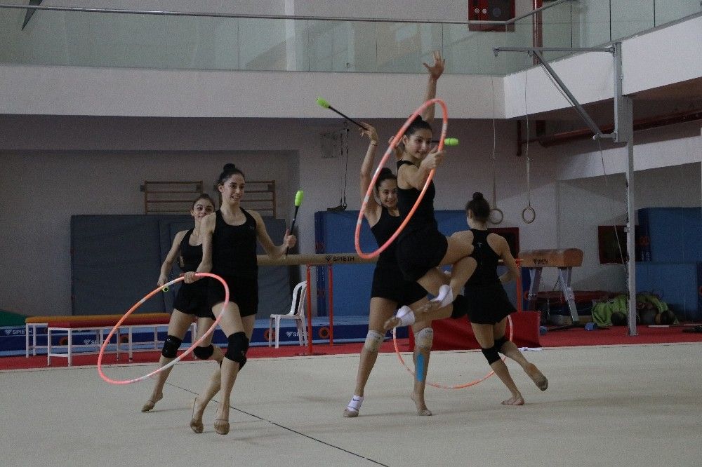 14 Ekim'de Mersin'de kampa giren Ritmik Cimnastik Büyükler Milli Takımı, 2 hafta kentte kalacak. Mersin Cimnastik Salonu'nda günde çift idman yapan sporcular, 26-29 Kasım tarihleri arasında Ukrayna'da yapılacak Avrupa Şampiyonası'nda olimpiyat kotası alma hedefinde. Antrenör Kamelia Dunavska önderliğinde çalışmalar yapan olan sporcular, yaptıkları antrenmanlarla umut veriyor.