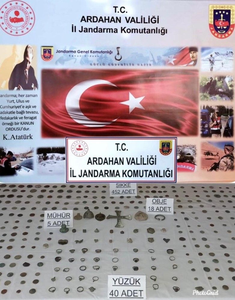 Jandarma ekipleri tarihi eser kaçakçılığı yaptığını belirlediği şüpheli hakkında çalışma başlattı. Ekipler şüphelendikleri 1 kişi hakkında teknik ve fiziki takip gerçekleştirdi. Çalışmalarını tamamlayan ekipler Göle-Kars karayolunda operasyon düzenledi. Operasyonda 1 şüpheli yakalanarak gözaltına alınırken, Bizans, Roma ve Orta Çağ dönemlerine ait 18 obje, 40 yüzük, 5 mühür ve 452 sikke ele geçirildi.