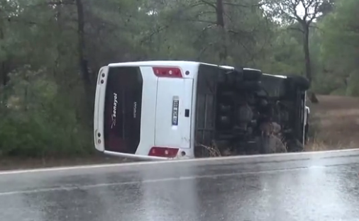 Manavgat ilçesinde yağış nedeniyle kayganlaşan yol kazaya neden olurken, kontrolden çıkan tur otobüsü devrildi. Devrilen tur otobüsünde bulunan 7'si Rus turist olmak üzere 8 kişi yaralandı.