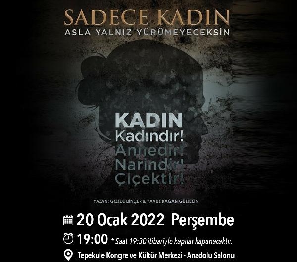 Bayraklı Belediyesi, kadına yönelik şiddete karşı farkındalık çalışmaları kapsamında, Gözde Dinçer ve Yavuz Kağan Gültekin'in yazdığı 'Sadece Kadın-Asla Yalnız Yürümeyeceksin' isimli tiyatro oyununa ev sahipliği yapacak. Pınar Koyuncu, Banu Güngör İnal, Merve Nur Türkan, Burçak Bilgili ve Murat İnal'ın rol alacağı oyun, Tepekule Kongre ve Kültür Merkezi-Anadolu Salonu'nda 20 Ocak'ta sahnelenecek.