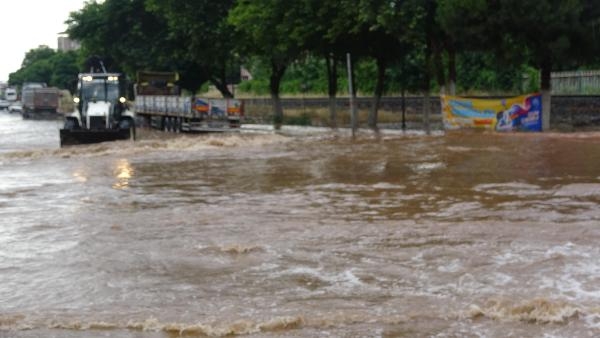 Aydın'da dün saat 14.00 sıralarında başlayan ve yaklaşık 3 saat süren kuvvetli sağanak, günlük yaşamı olumsuz etkiledi. Tıkanan rögarlar taştı, sel suları nedeniyle cadde ve sokaklar suyla doldu, bazı ev ve iş yerlerinin bodrum katlarını su bastı.