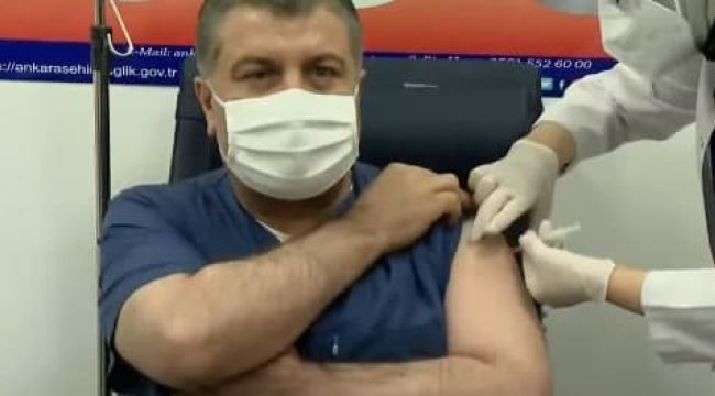 Sağlık Bakanı Fahrettin Koca, yeni tip koronavirüse (Kovid-19) karşı Çinli Sinovac şirketi tarafından geliştirilen koronavirüs aşısını oldu. Bakan Koca, aşıdan sonra şunları söyledi: