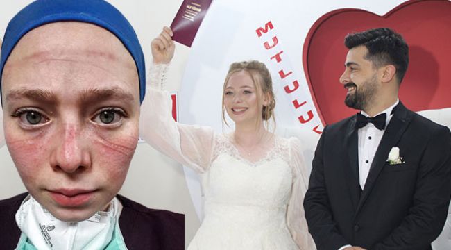 Trabzon'da maske takmaktan yüzünde izler oluşan, bu sırada çektiği fotoğrafı sosyal medyadan paylaşınca salgınla savaşan sağlıkçıların simgesi haline gelen yoğun bakım servisinde görevli hemşire Seher Altuncu, Çaykara ilçesinde düzenlenen nikah töreniyle dünya evine girdi.
