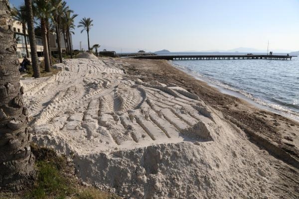 Bodrum Belediyesi'ne Bahçelievler Mahallesi Şevket Sabancı Caddesi'ndeki bir turizm tesisinin sahile beyaz kum döktüğü ihbarı yapıldı. İhbar üzerine bölgeye giden Bodrum Belediyesi Zabıta Müdürlüğü ekipleri, ekolojik dengeye ve insan sağlığına zarar verebileceği için döküm işlemini durdurarak sahilden iş makinelerini çıkardı.